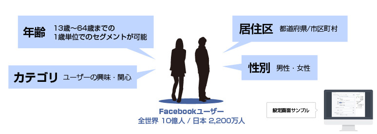 年齢、性別、趣味・関心をベースにしたターゲティング広告配信が可能です。